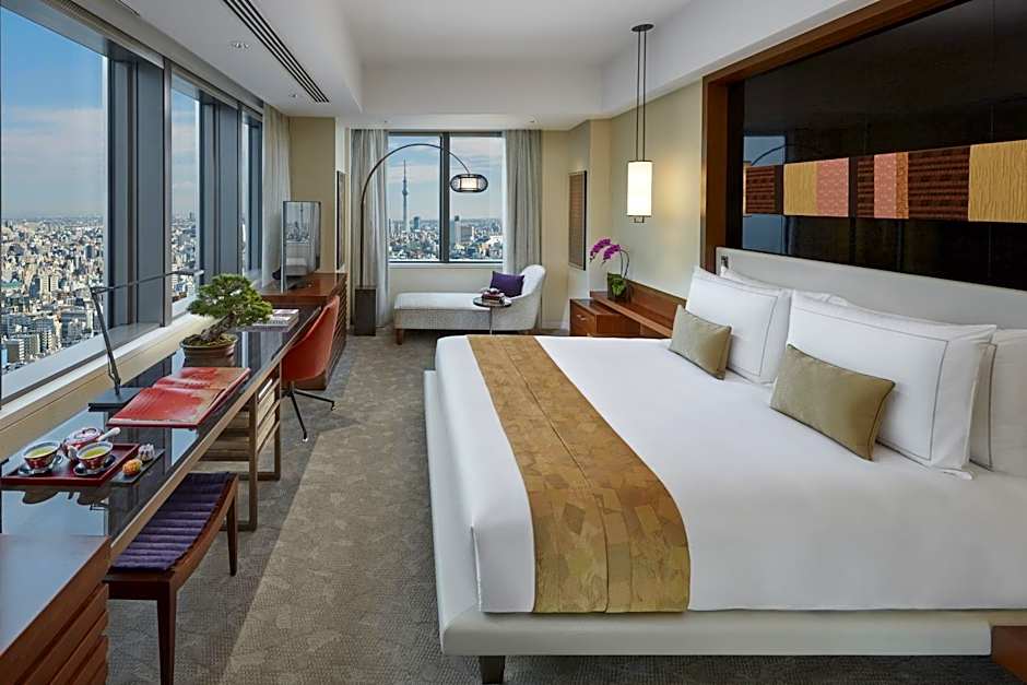 This corner suite features panoramic views of Tokyo. Spacious rooms featuring contemporary Japanese designs and stunning city views from wide windows. A full range of modern amenities are offered, including a satellite flat-screen TV, seating area and desk. Bathrooms have a large bathtub and separate shower.